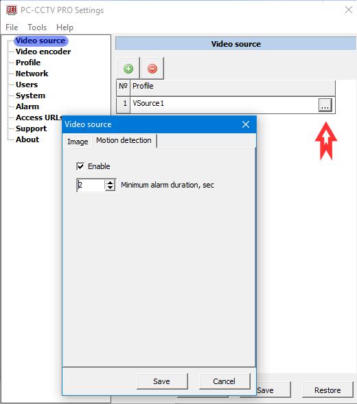 To edit settings of the video source press button